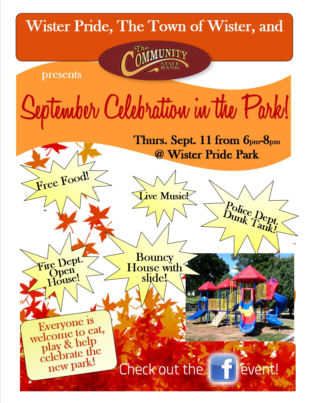 Wister Pride park 109 Magnolia Ave,, WisterWister Pride, the Town of Wister and The Community State Bank will host a grand celebration of the new playground that will include FREE food, fun and fellowship! You won't want to miss this.